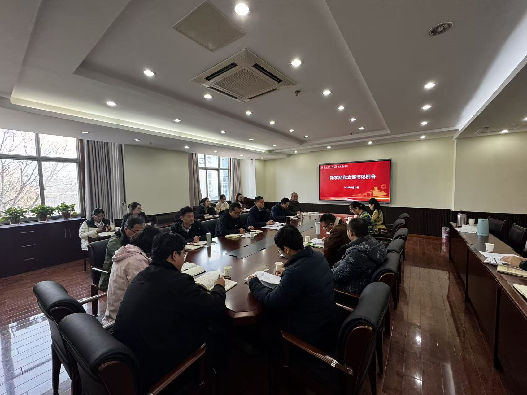 最后,桑玉昆对学院2026年党建重点工作任务作出具体部署,提出了工作要求。对存在的薄弱环节进行了分析研判,并做出相应工作安排。结合学院科研团队建设等,明确了新学期支部设置调整的工作计划,要求党员严格遵守行为规范,着力提升党员素养,以此保证充分发挥党支部战斗堡垒作用和师生党员的先锋模范作用。希望各支部要不忘初心,求真务实,全力推动学院党建工作和中心工作再上新台阶。