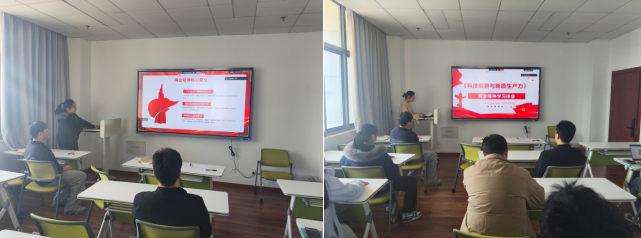 随后,张姝同志聚焦两会精神中与我们科研工作实际紧密相关的“科技创新”与“新质生产力”内容进行分享。结合自身专业背景,阐述了作为青年科研人员,如何在日常科研攻关中找准国家战略需求的结合点,理解新质生产力的科学内涵,并思考如何将论文写在祖国大地上,以实际行动服务国家高水平科技自立自强。两位同志的分享内容翔实、视角独到,引发了在场党员的热烈讨论与深入思考。