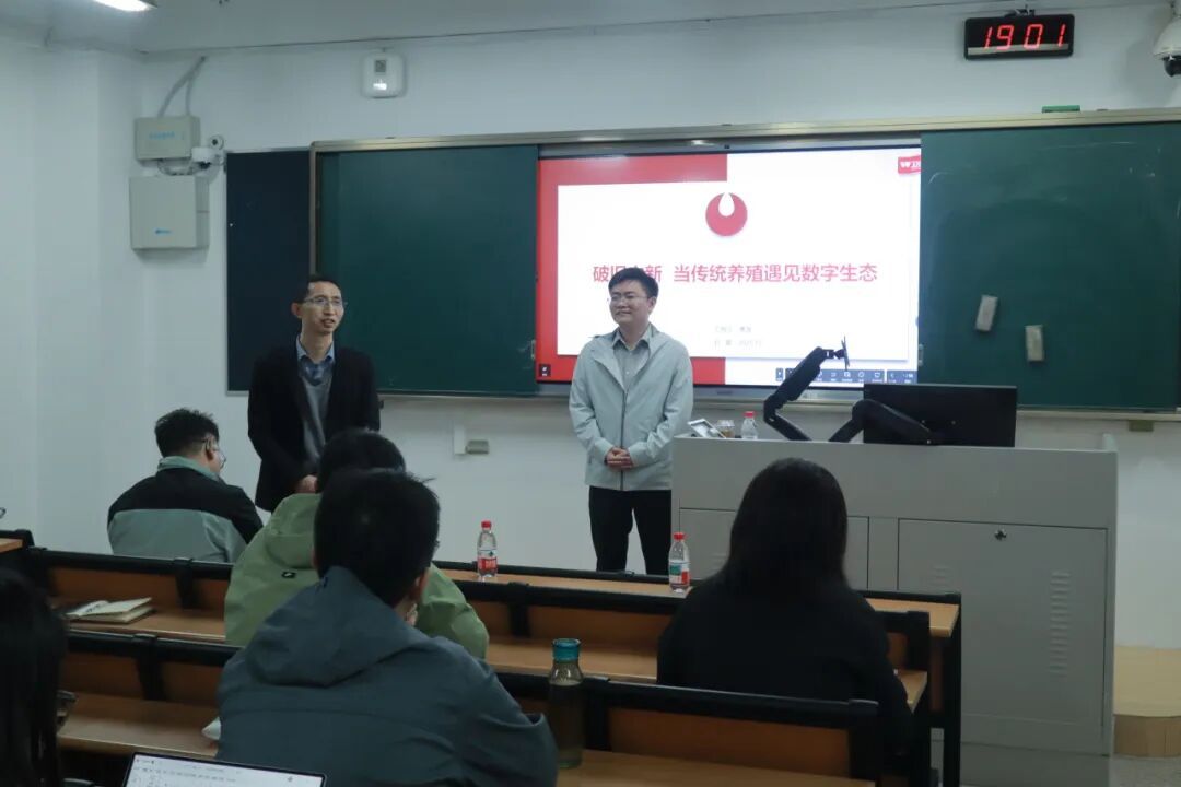 2025年11月15日晚,南京农业大学“现代奶牛生产与饲养管理”专硕学位公开课暨规模化牧场奶牛健康养殖技术培训在卫岗校区教学楼A206成功举办。本次讲座由南京农业大学研究生院、动物科技学院主办,反刍动物营养与清洁化生产中心、动物科技学院研究生会分会承办,申军士副教授主持。卫岗乳业副总裁、南农杰出校友兼校外指导教师唐波应邀主讲,以“破旧立新:当传统养殖遇见数字生态”为主题,与现场师生共同探讨奶业数字化转型的实践路径。