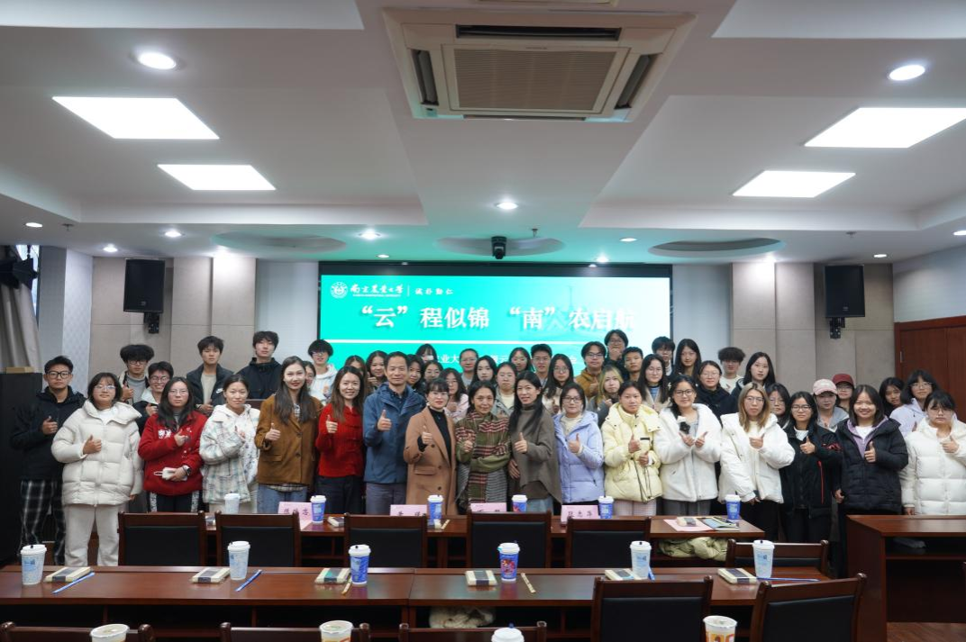 2025年11月19日下午,“云”程似锦“南”农启航——南京农业大学2025级云南新生见面会在理科楼C303报告厅成功举办。校团委青年发展部部长丁群、校招办主任黄瑾、校云南招生组组长、图书馆(文化遗产部)农业遗产部主任段志萍、云南籍教师代表、工学院辅导员陈晓恋、动科院辅导员顾潇以及近50位云南籍新生齐聚一堂,以乡情为纽带,话成长、谋未来,共绘求学新蓝图。此次活动由动科院辅导员匡晶生主持。