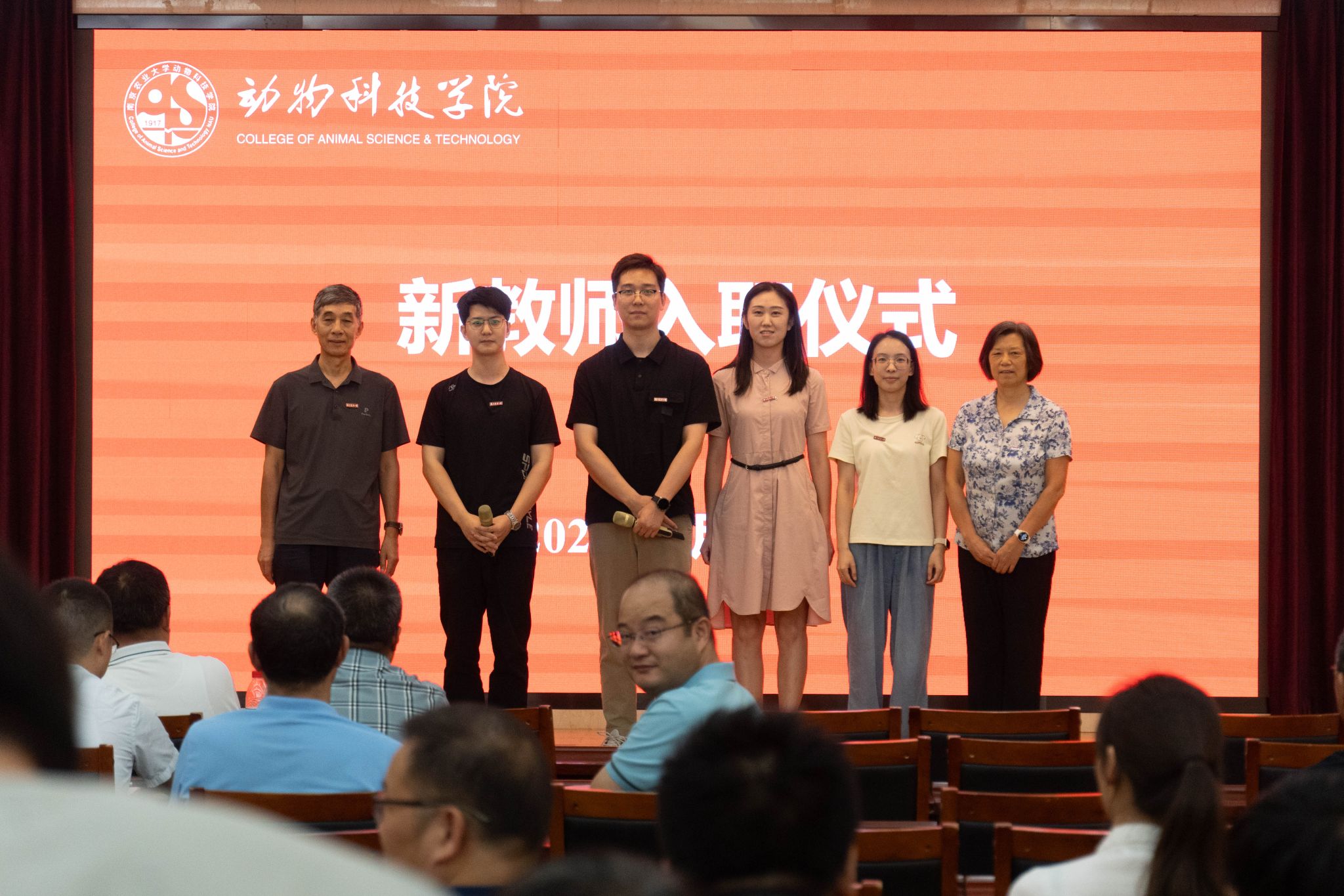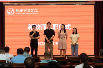 学院邀请朱伟云教授和从教41年庄苏教师为新教师佩戴校徽,标志着其正式成为动物科技学院一员。