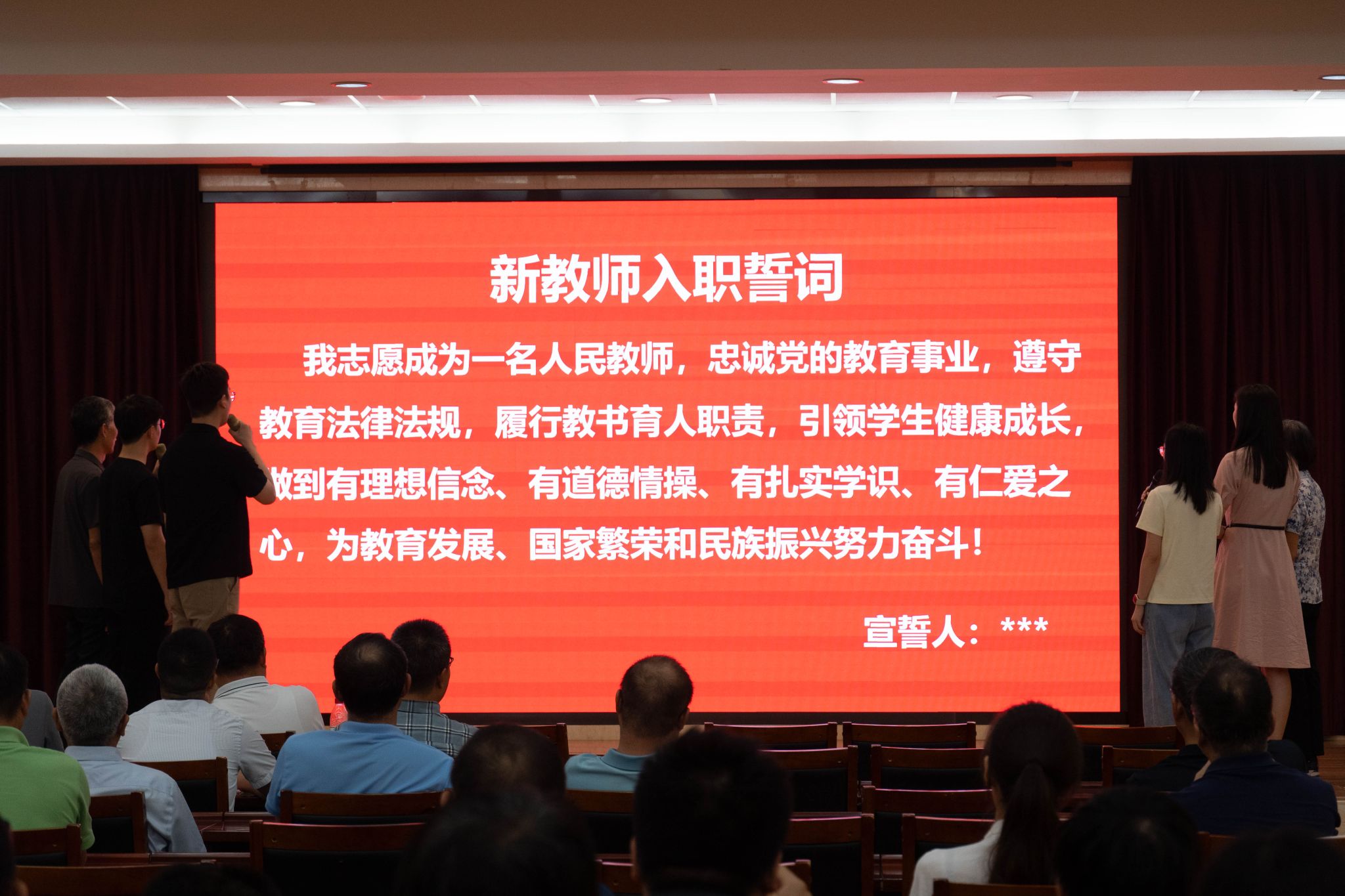 在全体教职工共同见证下,二位教授引领新教师进行了庄严入职宣誓。誓言既彰显对教书育人神圣职责的恪守,亦包含对学术创新矢志追求、助力学院蓬勃发展的坚定承诺,为教师队伍注入蓬勃生机与崭新活力。