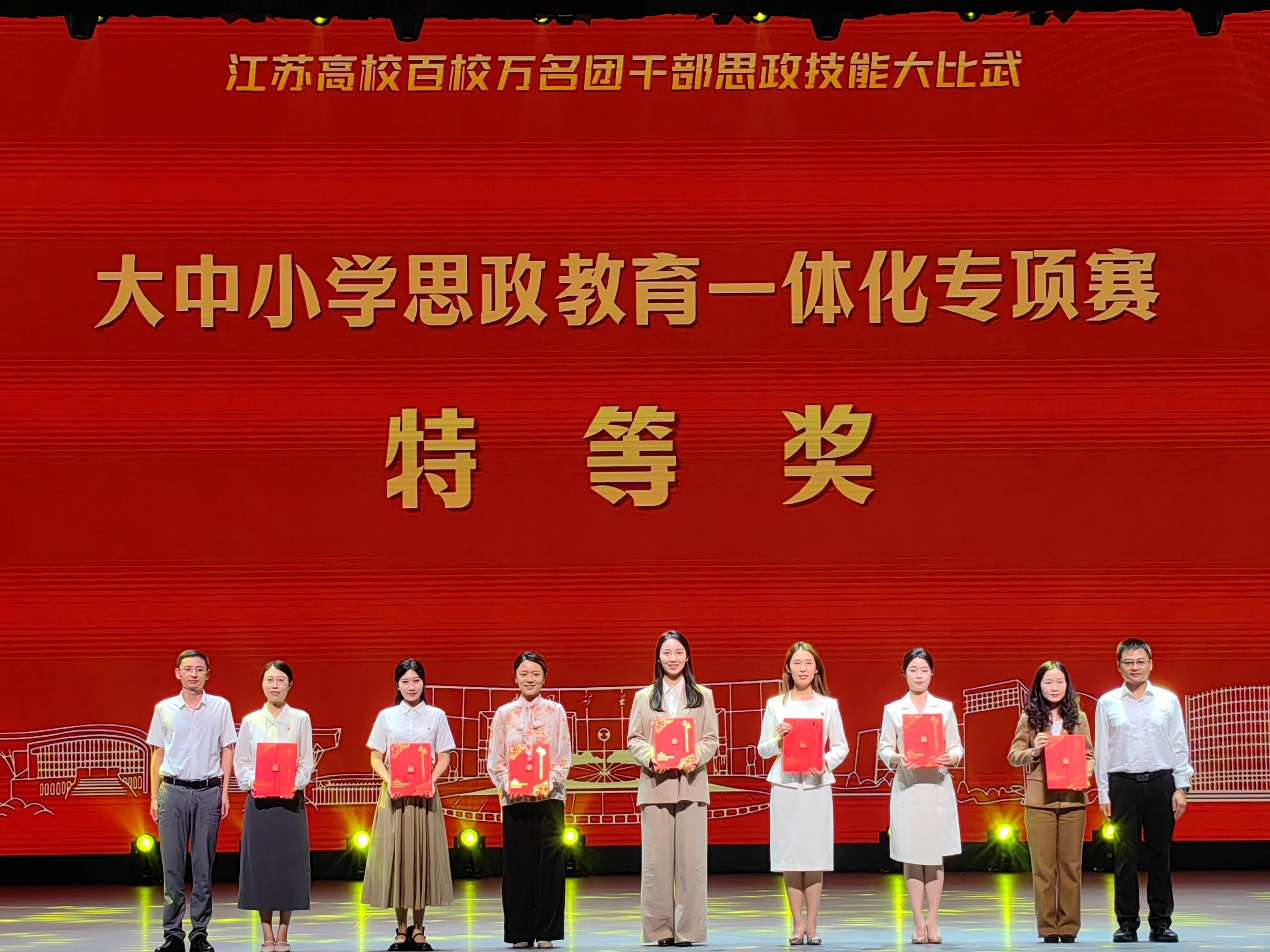 近日,由共青团江苏省委、中共江苏省委教育工委、江苏省社会科学院、江苏省学生联合会共同主办的第五届江苏高校百校万名团干部思政技能大比武在江苏徐州举行。我院专职团干部顾潇荣获大中小思政教育一体化专项赛赛道特等奖。