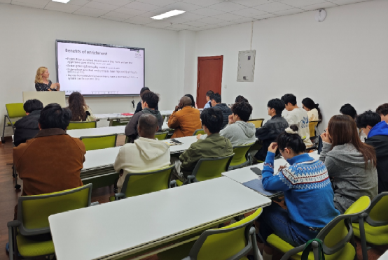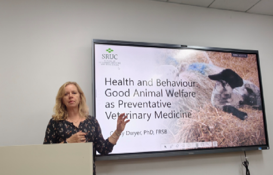 访问期间,Dwyer教授为师生带来了题为“Health and Behaviour: Good animal welfare as preventative veterinary medicine”的专题学术讲座。她系统阐述了良好动物福利对于提升动物免疫力与疾病抵抗力的关键作用,指出改善饲养管理、促进环境丰容与社会互动可作为预防疾病、减少抗生素使用的有效途径。报告内容翔实,现场互动热烈,引发了师生们的深入思考与踊跃提问。
