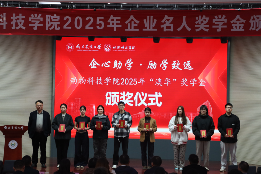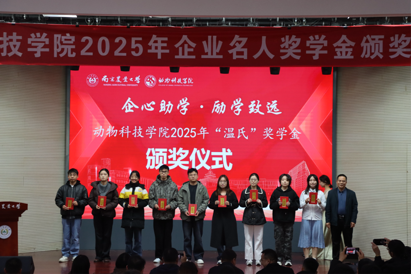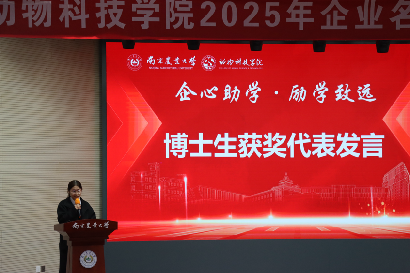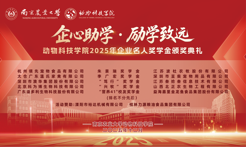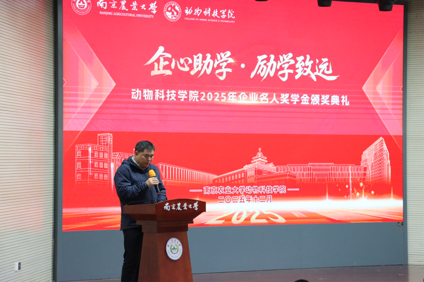 2025年12月6日下午,南京农业大学动物科技学院2025年“企心助学,励学致远”企业名人奖学金颁奖典礼在大学生活动中心隆重举行。