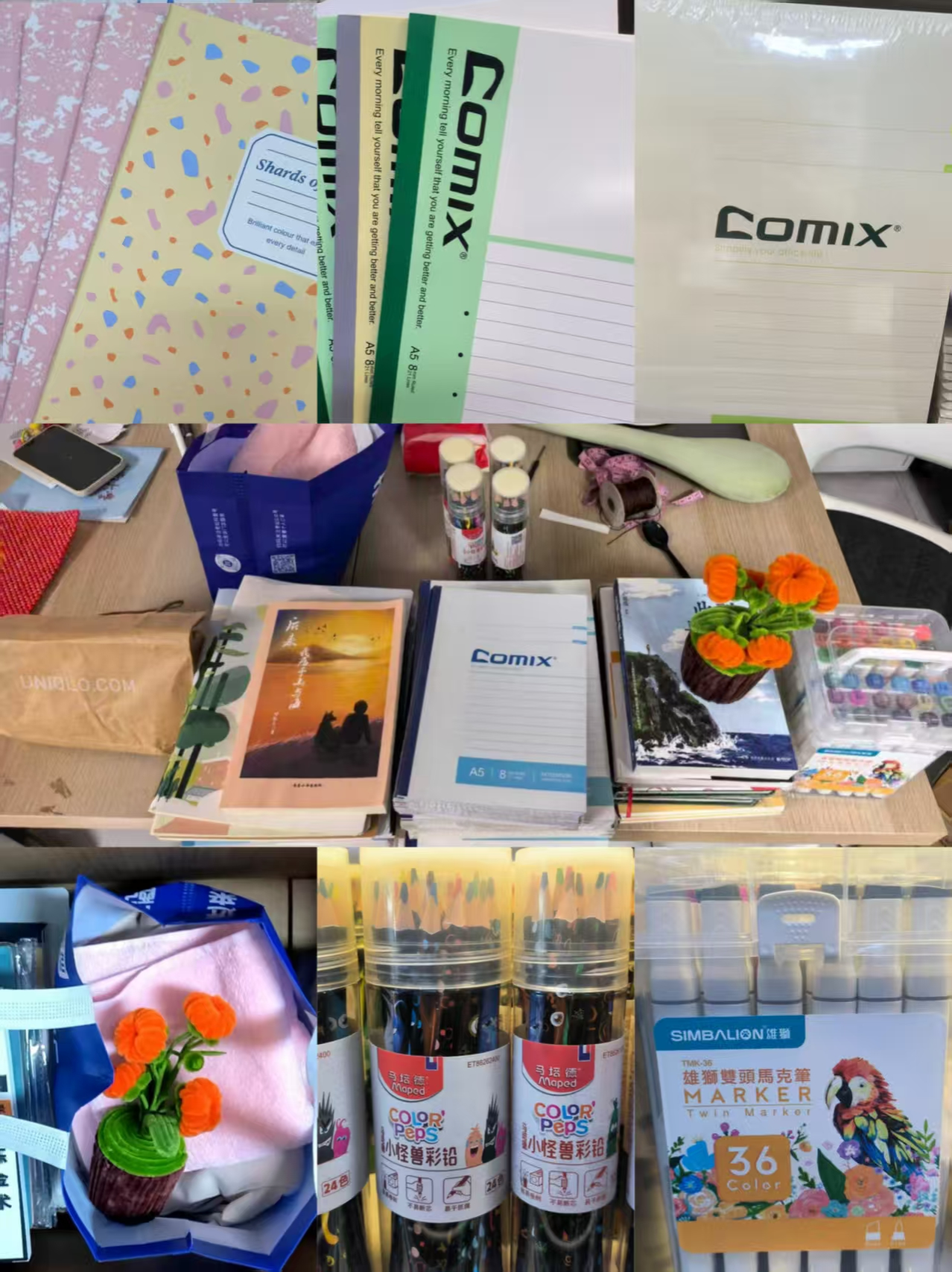 本次活动面向全校学生,以 “让闲置物品‘活’起来,让善意触及需要温暖的心” 为核心,得到了同学们的积极响应:整洁的笔记本、未开封的文具、色彩鲜亮的马克笔…… 一件件带着温暖汇聚到捐赠点,更有同学附上暖心留言,将鼓励藏进字里行间。活动募集笔记本、文具、书籍等物资若干,让闲置物品化为了传递爱的载体。