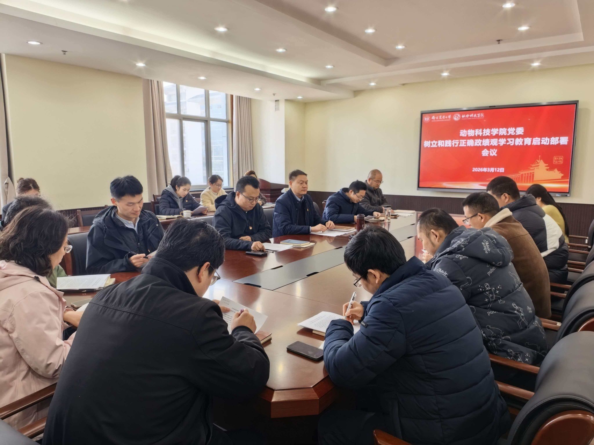 3月12日下午,动物科技学院党委在理科楼C307召开树立和践行正确政绩观学习教育启动部署会。学院党委委员、全体党支部书记、组织员、党务秘书、宣传秘书参加会议,会议由院党委书记桑玉昆主持。
