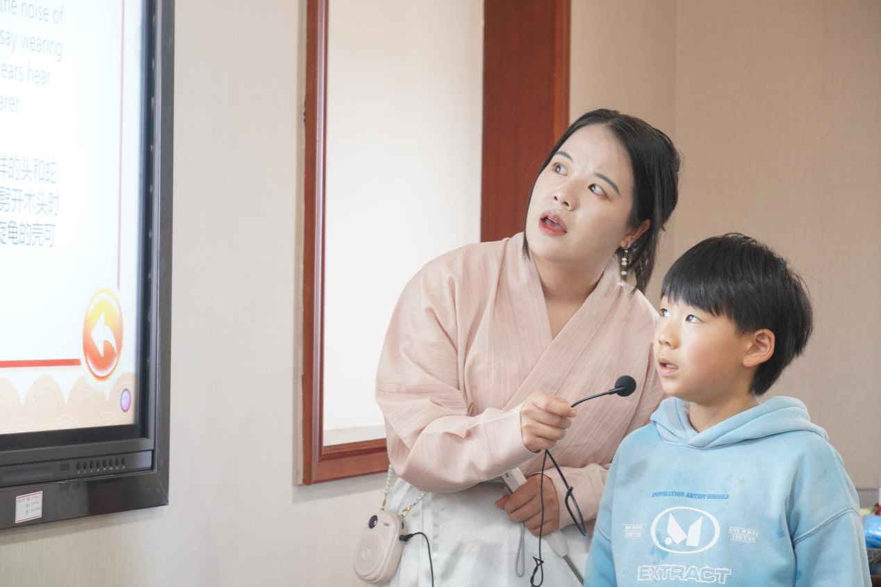 活动伊始,孩子们有序签到入场,在轻松愉悦的氛围中开启春日研学之旅。新东方国际教育Alan老师开展沉浸式双语课堂,带领大家探秘《山海经》,趣玩传统民俗游戏,以趣味互动形式感受中华优秀传统文化魅力,双语讲解让知识学习更生动、更易懂。