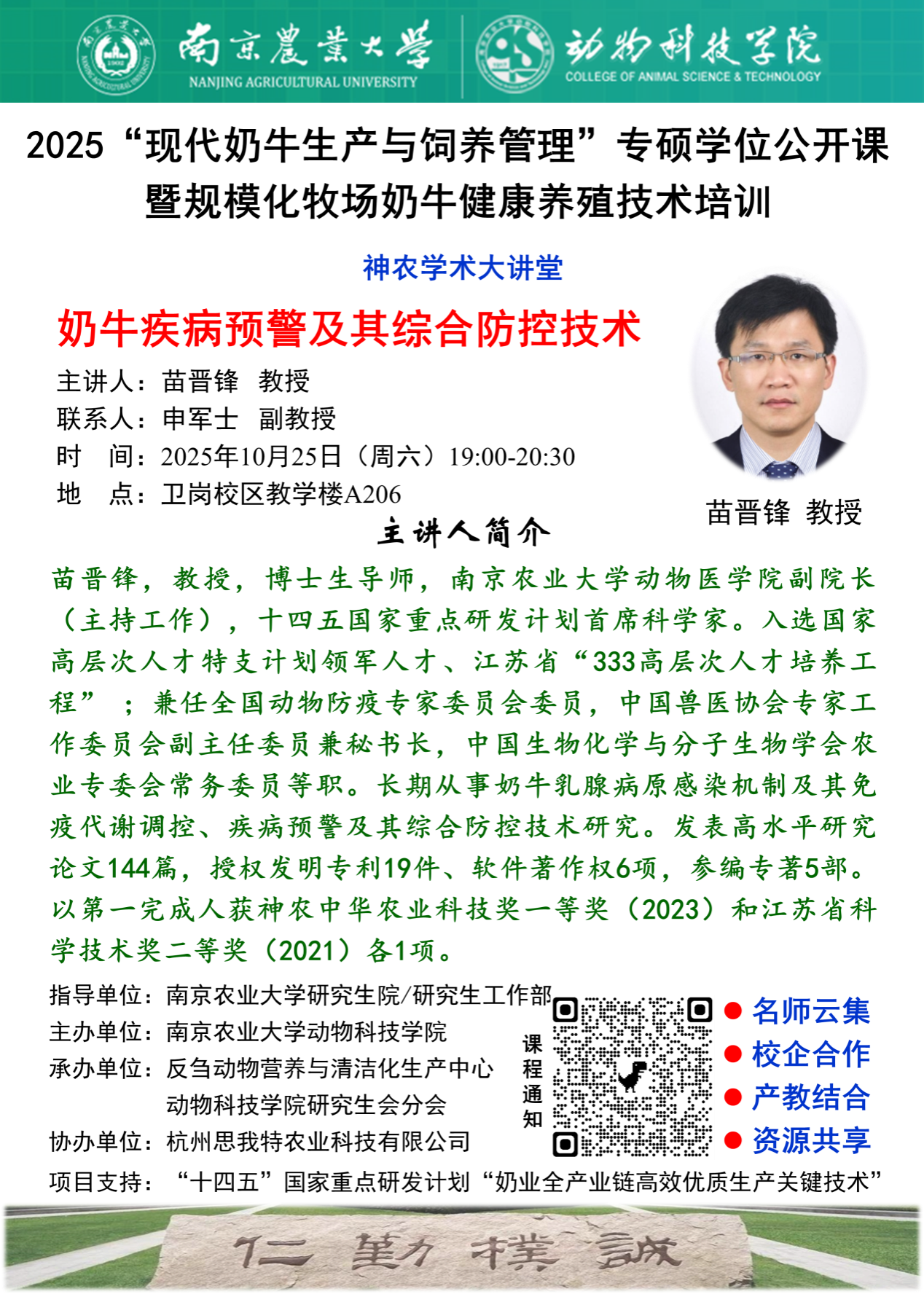 预告|苗晋锋:奶牛疾病预警及其综合防控技术